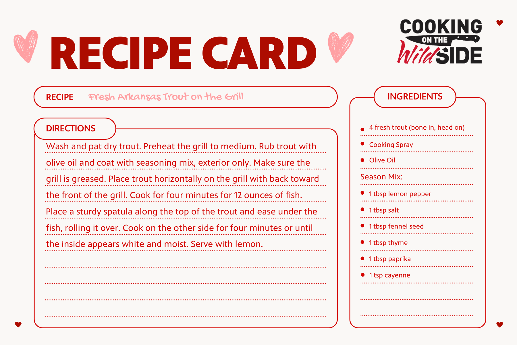 Maybe you and your date desire a lighter meal to save a bit of room for dessert. The White River has great trout fishing in Arkansas, especially during the winter months. Catch those bad boys, fire up the grill, and make this meal for Valentine’s Day.