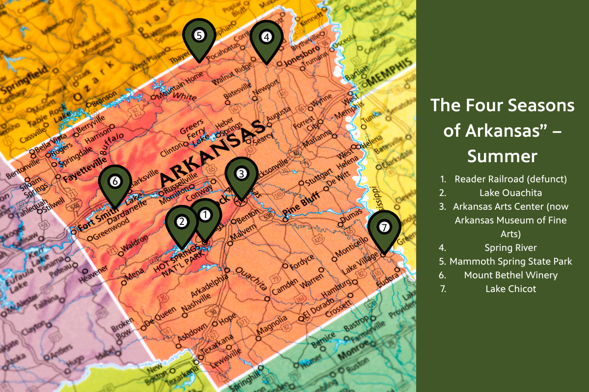 Visit the Reader Railroad, Lake Ouachita, the Arkansas Arts Center, the Spring River, Mammoth Spring State Park, Mount Bethel Winery and Lake Chicot.