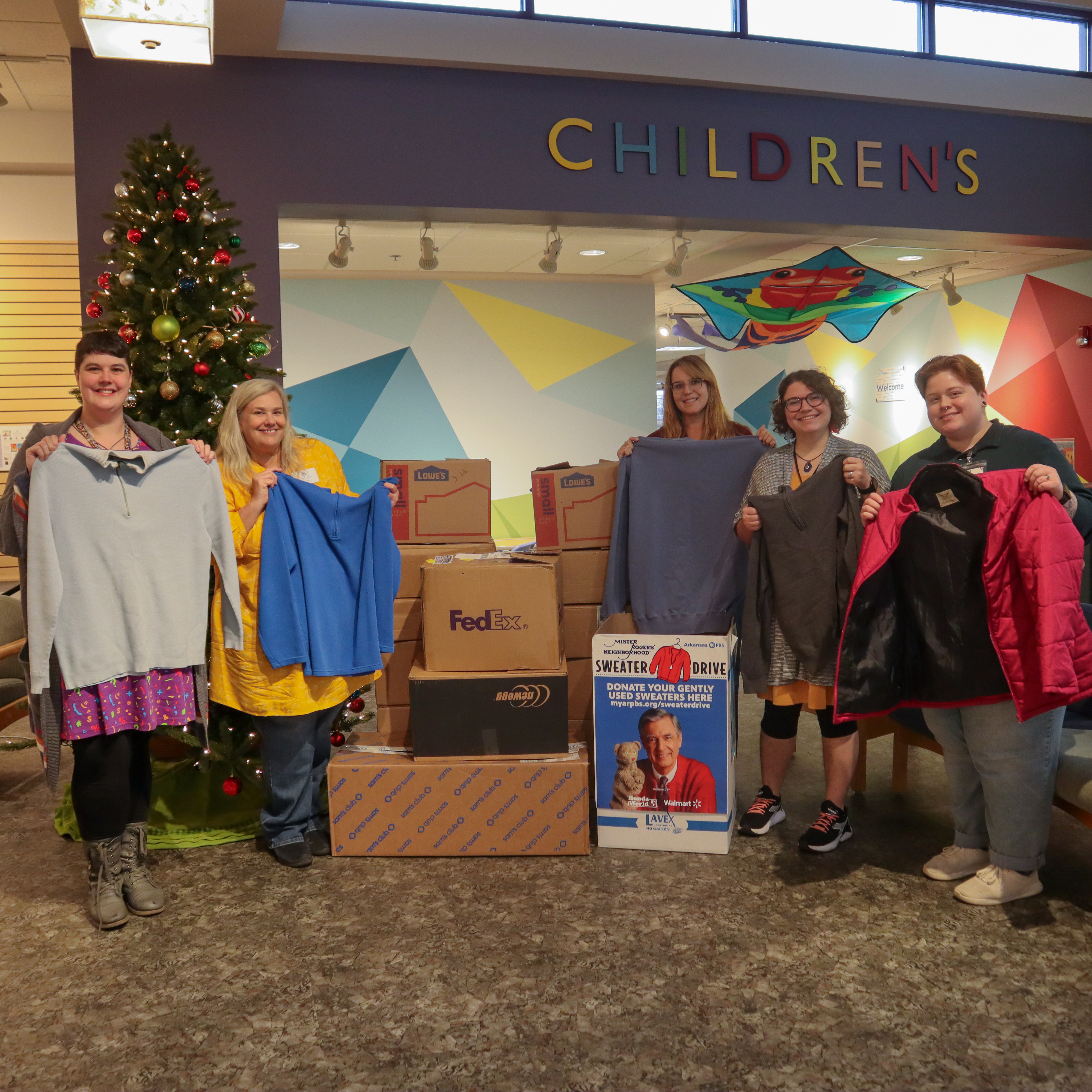 Founded by Fred Rogers in 1997, the Mister Rogers’ Neighborhood Sweater Drive symbolizes the spirit of neighborly love and support. We’re honored to continue Rogers’ legacy by partnering with over 85 libraries, schools, businesses and other organizations statewide to help those in need stay warm this winter. All donations are distributed within the community where they are collected. While it’s called a “sweater drive,” we welcome any new or gently used cold-weather clothing items.