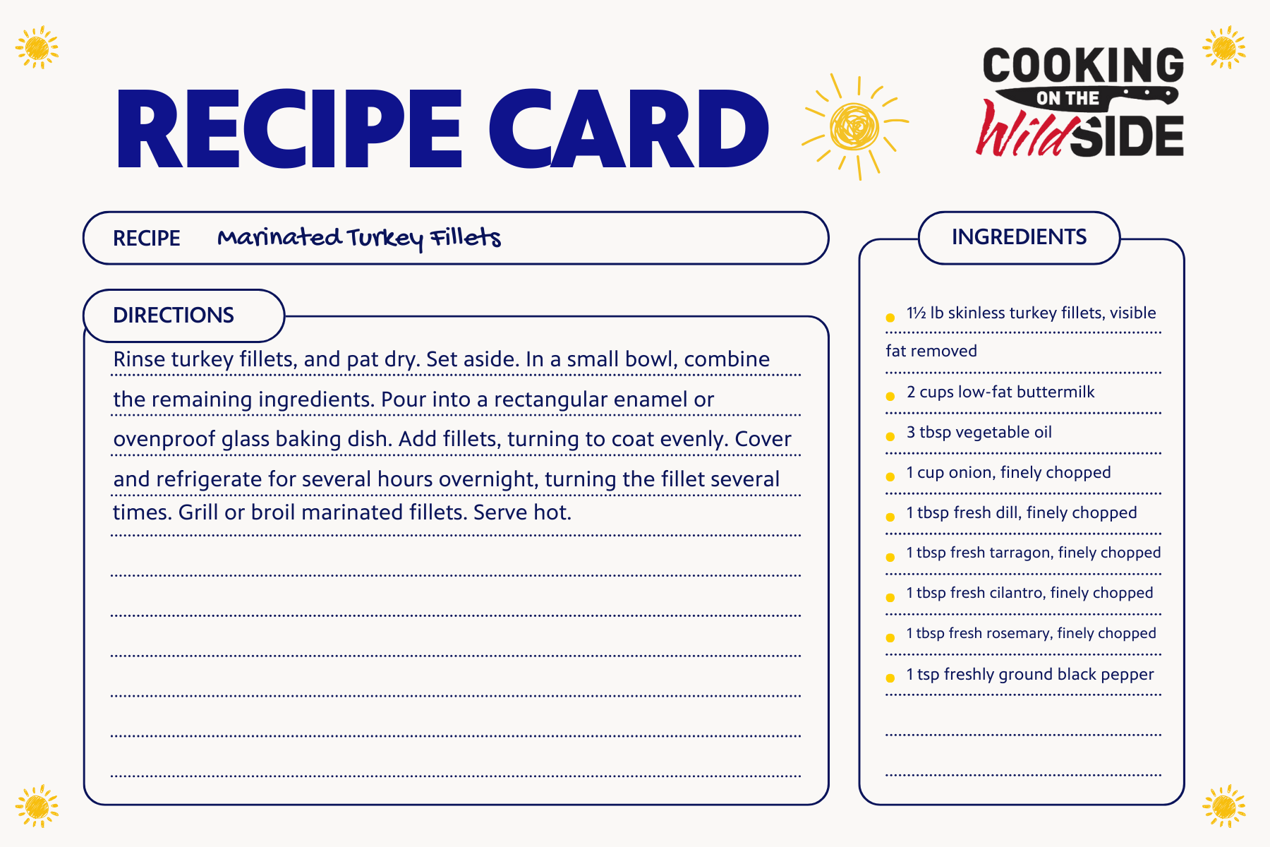 ● 1½ lb skinless turkey fillets, visible fat removed