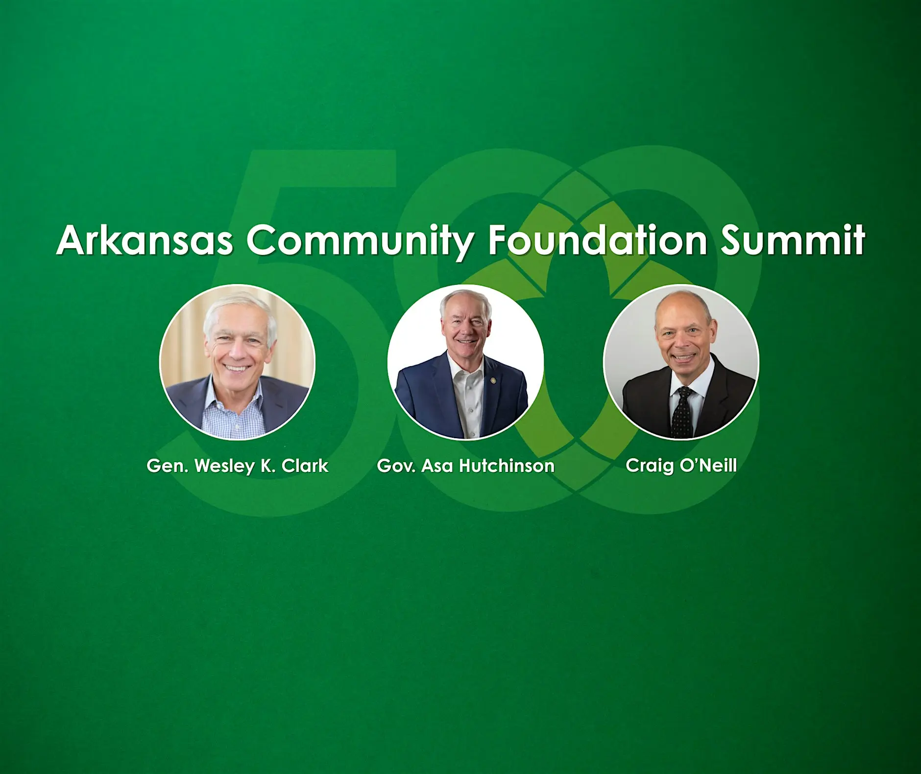 The Arkansas Community Foundation Summit, held at Ron Robinson Theater, is a fireside chat with General Wesley K. Clark (Ret.) and former Arkansas Gov. Asa Hutchinson, moderated by Craig O’Neill. The discussion will explore the importance of respectful dialogue, principled leadership and the role each of us plays in strengthening our communities and civic life.